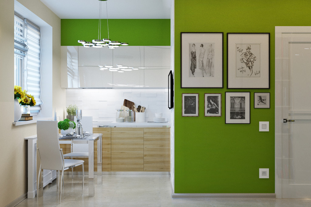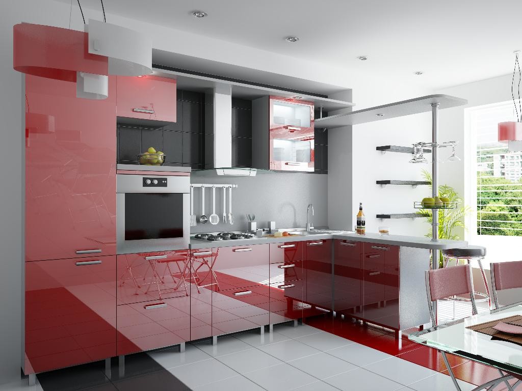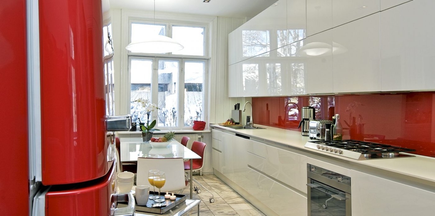 Прекрасное решение для кухонь любой площади – гладкие с насыщенными цветами фасады.