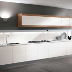 Каждый модуль выстраивайте так, чтобы получилась одна единая строгая линия. Для кухонь вытянутой узкой формы – это наиболее подходящее оформление. Здесь будет удобно работать не обязательно одному человеку.