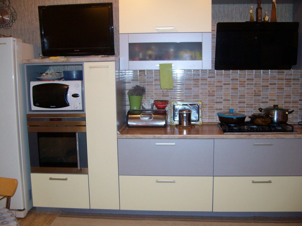 Сюда можно отнести: холодильник и посудомоечную машинку, духовку или микроволновую печь, плиту.