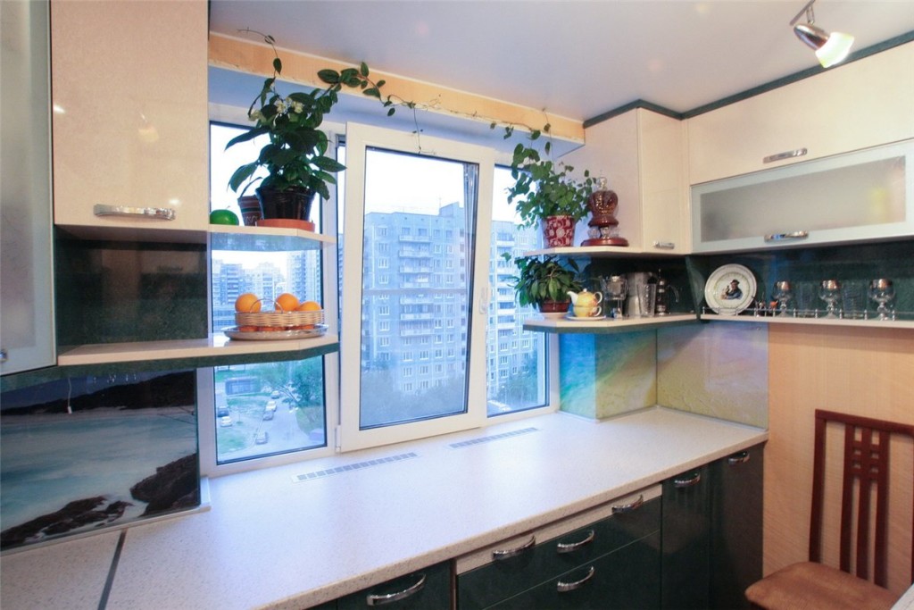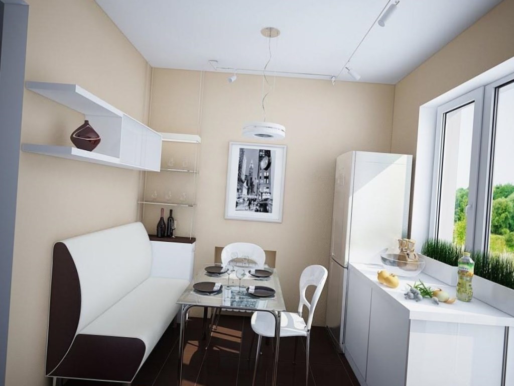 Конечно, здесь не стоит загромождать и без того, маленькое помещение. Можно поставить маленький кухонный гарнитур. Также смотрите фото кухонные гарнитуры кухни угловые.