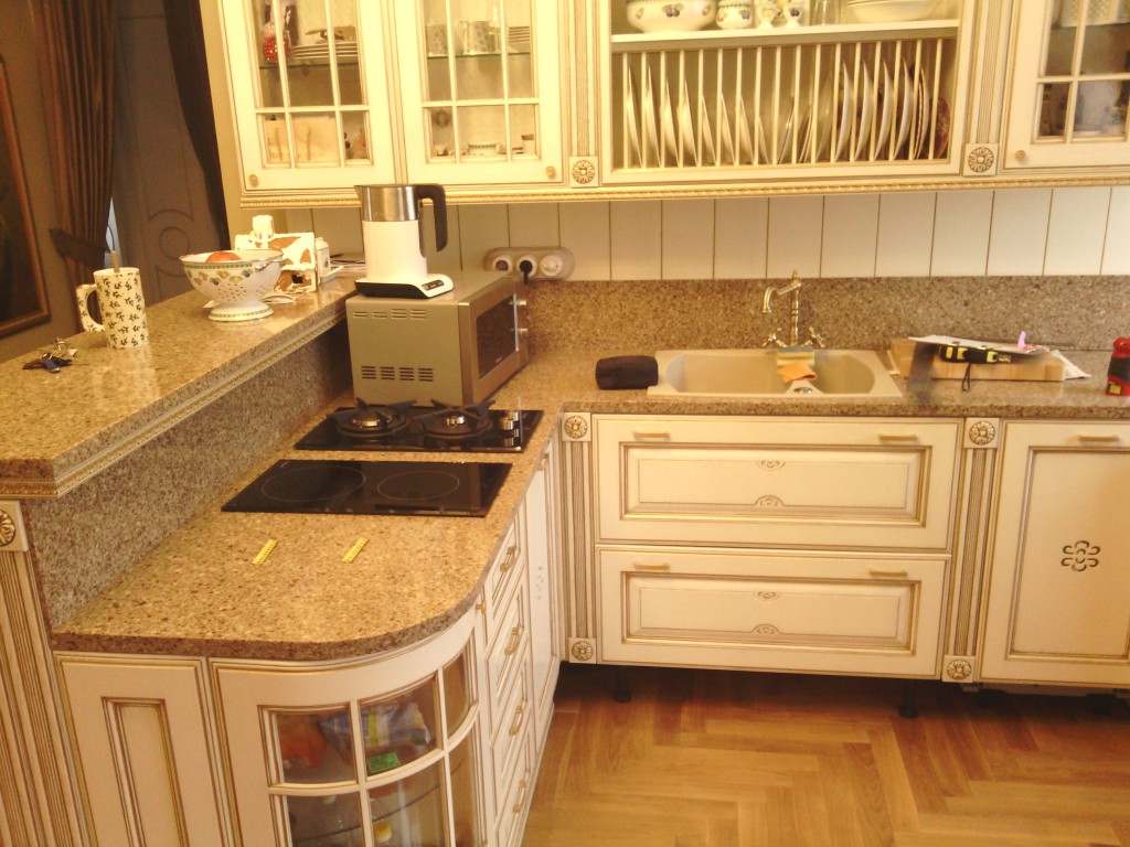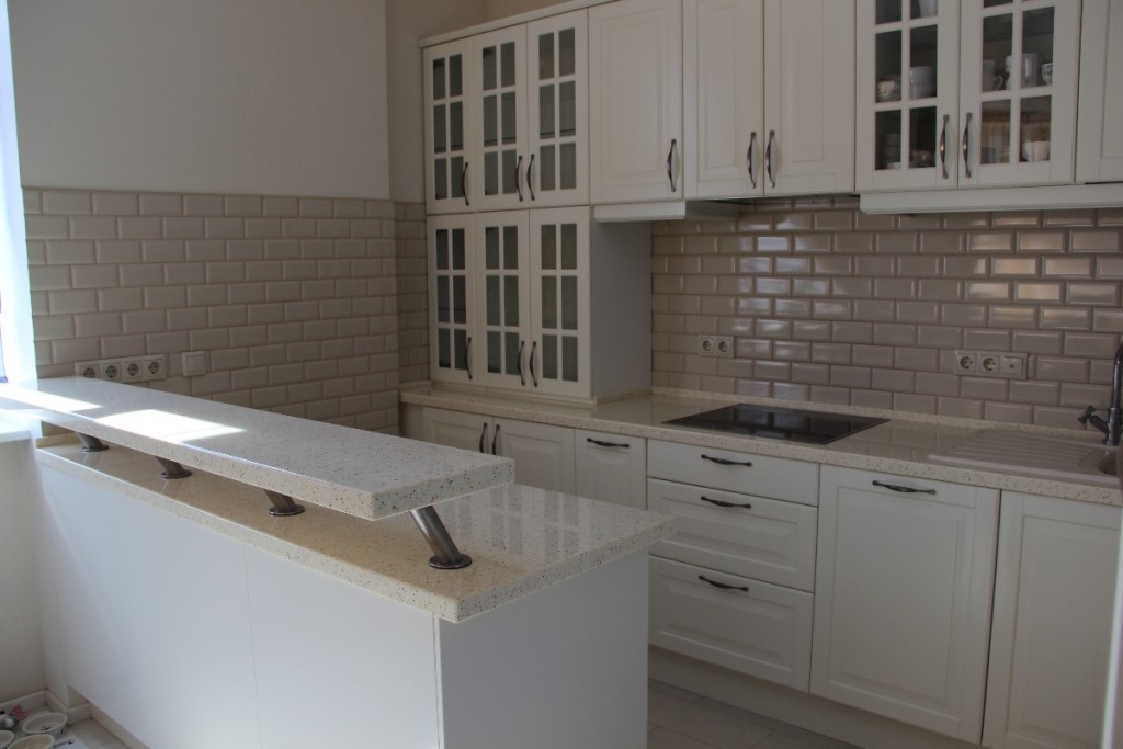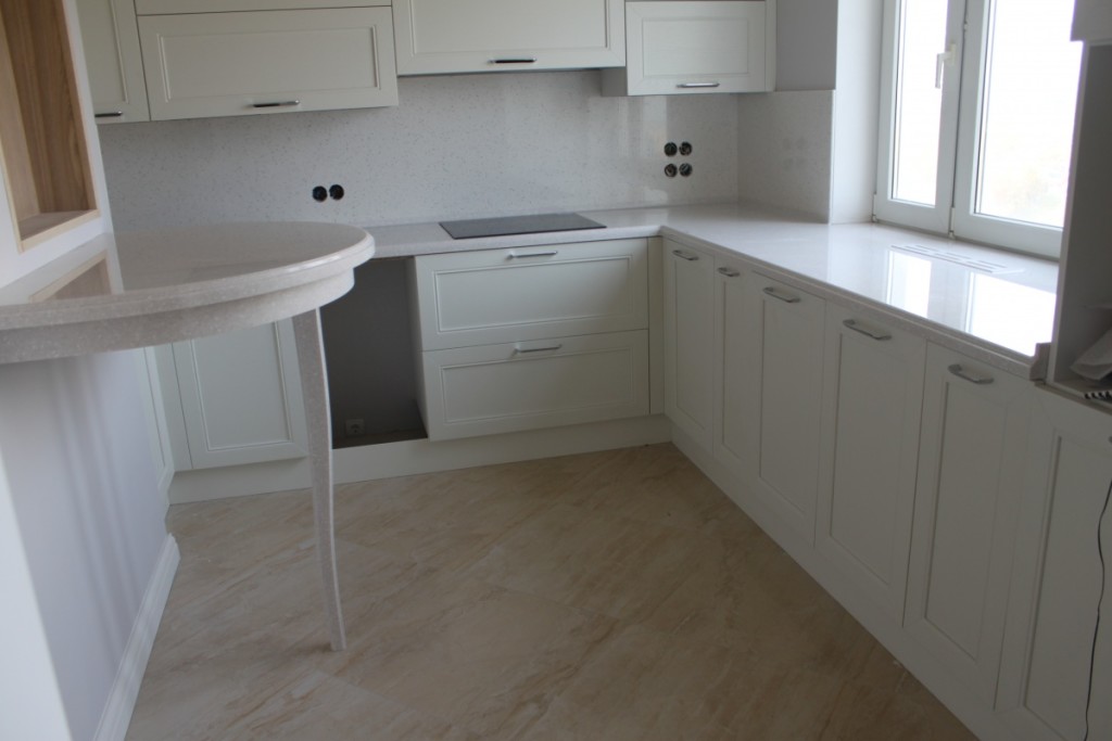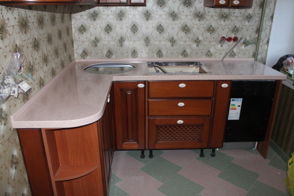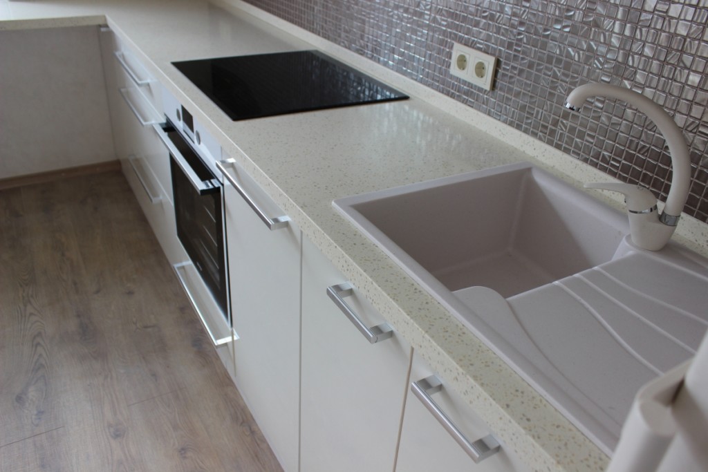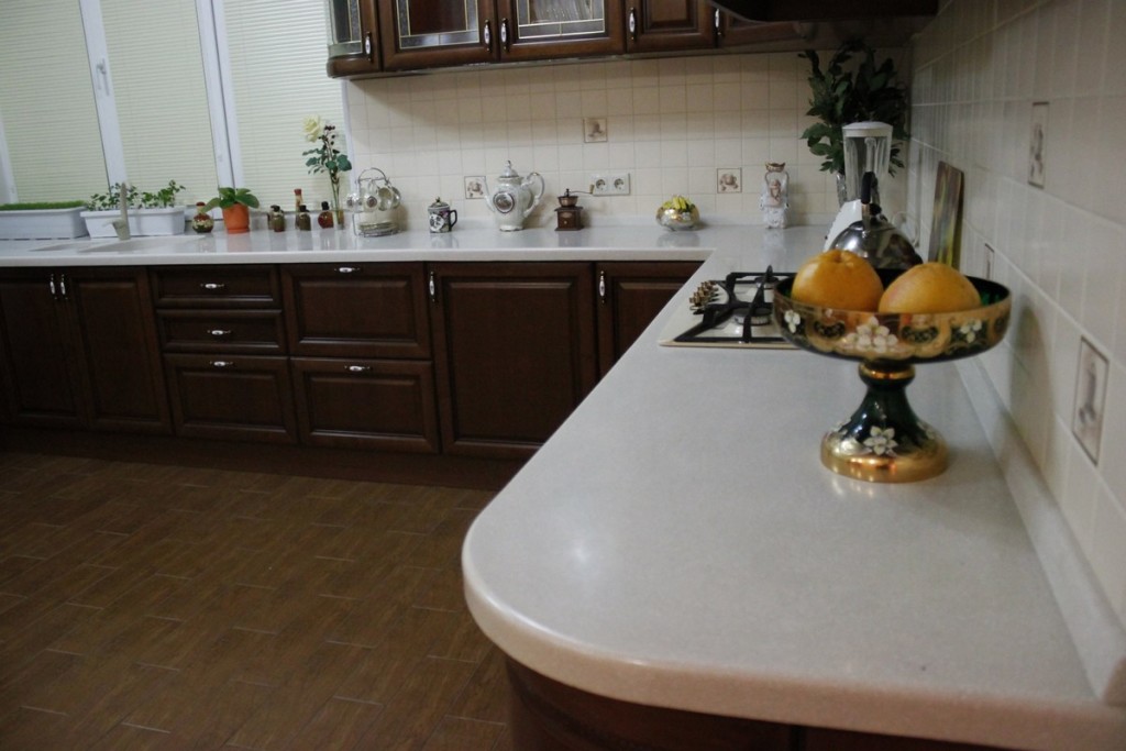 Из камня столешницы – очень практичный вариант. В натуральном камне имеется пористость и склонность накапливания воды. Поэтому искусственный камень еще более практичный.