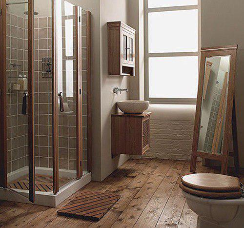 - Деревянный пол в ванной.
